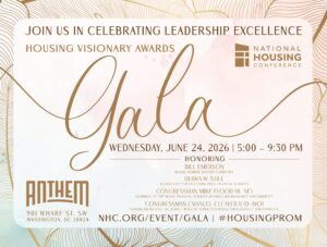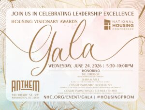 On Wednesday, June 24, 2026, NHC will host our Annual Housing Visionary Awards Gala at the Anthem in Washington, D.C.! Housers from across the country will come together to celebrate the leadership excellence of this year’s honorees: Bill Emerson, Board Member, Rocket Companies, and Debra W. Still, Retired CEO, Vice Chair, Pulte Financial Services.