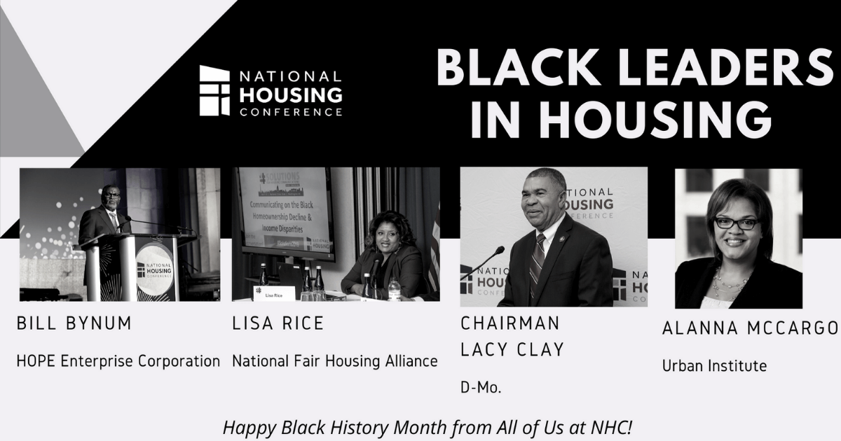 Black History Month traditionally focuses on the achievements of African American leaders of the past. This week, NHC is recognizing leaders making history today in housing policy, advocacy, research and community development. Diverse perspectives are essential to advancing affordable housing and are highly valued by NHC and our members. Some of these leaders include Maurice A. Jones of the Local Initiatives Support Corporation (LISC), Alanna McCargo of Urban Institute, Lisa Rice of the National Fair Housing Alliance, Bill Bynum of HOPE Enterprise, House Financial Services Committee Chairwoman Maxine Waters (D-Calif.) and the committee’s Housing, Community Development and Insurance Subcommittee Chairman Lacy Clay (D-Mo.).